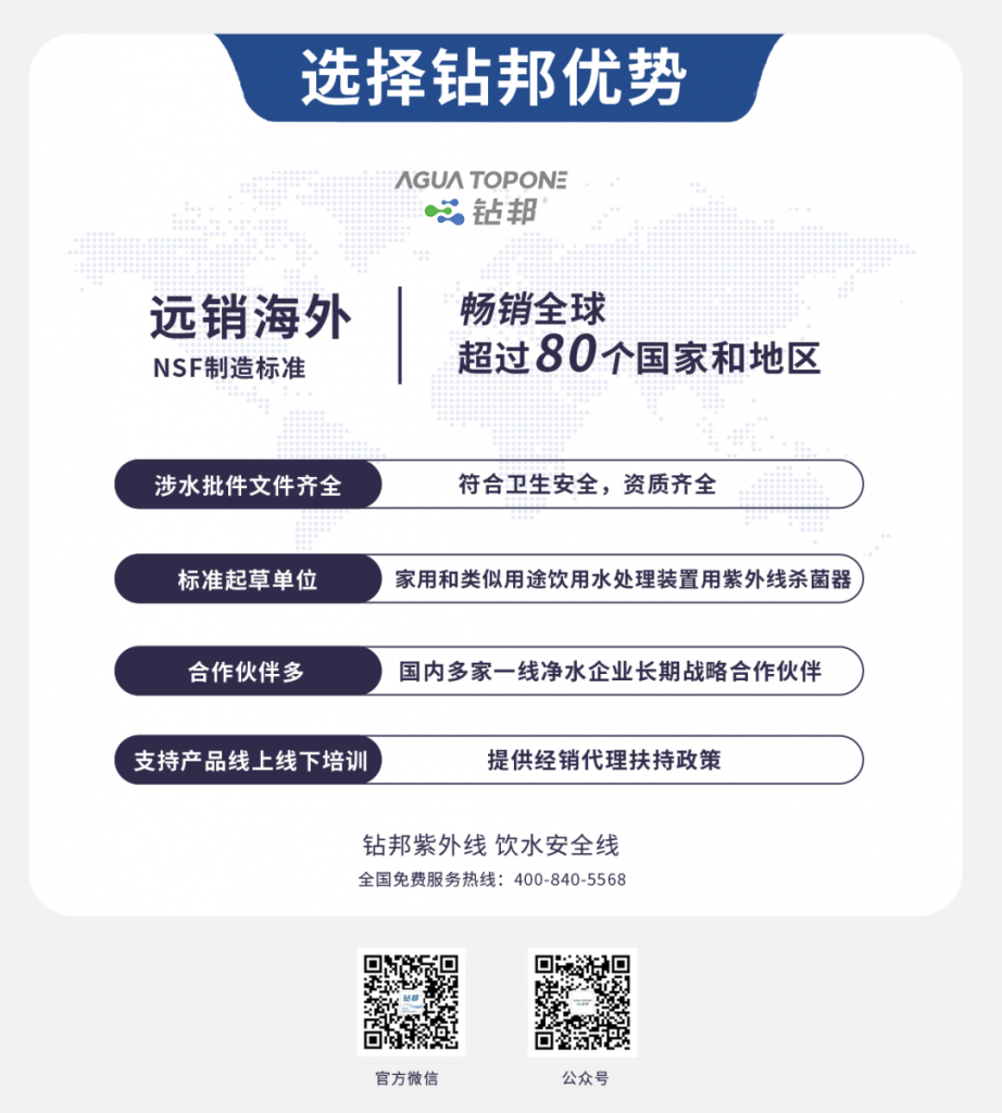 全球水消毒的趨勢正在從化學(xué)消毒轉向更為安全、友好、可持續發(fā)展的紫外線(xiàn)物理消毒方式,而浙江鉆邦也必將借勢揚帆,乘風(fēng)起航,高標準,嚴要求,緊抓品質(zhì)一致性,堅定不移執行國內一流科技創(chuàng )新、國際先進(jìn)生產(chǎn)工藝的精準定位,人無(wú)我有,人有我優(yōu),爭做中國紫外線(xiàn)行業(yè)先行者和領(lǐng)路人。協(xié)同創(chuàng )新,合作共贏(yíng),一起探索紫外線(xiàn)行業(yè)在全球市場(chǎng)的推廣和應用。